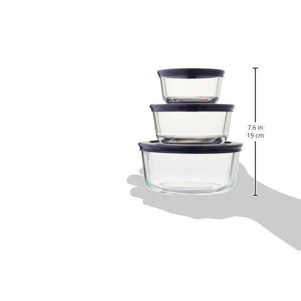 Pyrex Simply Store 6pc Round Glass Food Storage Container Set with Blue Lids